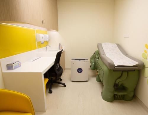 儿科就诊区总是会接待许多小病人,宝宝们抵抗力相对较弱,幼嫩的呼吸道及免疫功能发育尚未完善,更容易受到室内污染物的影响。上海和睦家医院新址儿科就诊区根据宝宝健康状况,用绿色和黄色区分就诊区。