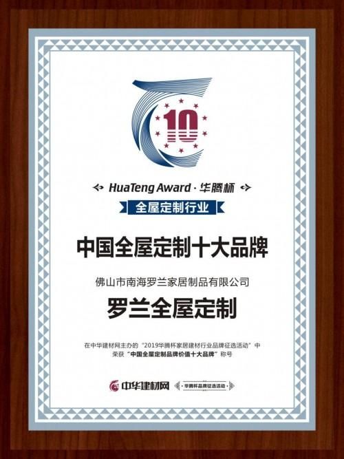 实至名归,罗兰全屋定制荣获中国全屋定制十大品牌