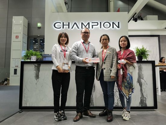 在2019意大利博洛尼亚展上,冠军磁砖展现中国建陶的实力,向全世界诠释“中国智造”,让世界感受“高端中国陶瓷”的非凡魅力!未来,冠军磁砖将为全球更多高端建筑地标和家居生活,创造高端的用砖质感,为世界文明创造更大的价值。