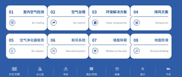 凡斯环保在立足市场发展多项业务的同时不断完善自身的业务链,他们提供的服务从室内空气检测、空气治理、环保解决方案到排风方案、空气净化器租赁、新风系统、墙面除霉、地面防滑、开荒保洁以及精保洁,可以给人们提供全方位一站式的室内空气环境治理方案。