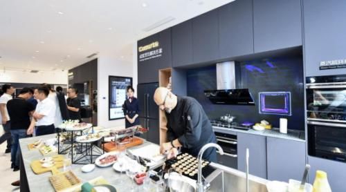 据工作人员介绍,卡萨帝“指挥家”成套厨电涵盖烟机、灶具、烤箱、蒸箱、咖啡机、消毒柜等9件产品,可实现“自动烹饪”、“烟灶联动”的智慧功能。