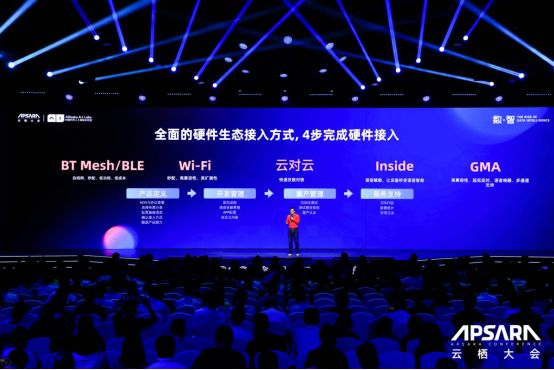 天猫精灵本身具有全面的硬件生态接入方式:BT MESH/BLE 、WI-FI、云对云、Inside 。而本次推出的 GMA 协议让硬件接入具有高兼容性、低延时性、语音唤醒、多通道支持的特点。