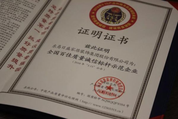 在2018年3·15期间,国家质量监督检验检疫总局和中国质量检验协会联合主办了“产品和服务质量诚信承诺”主题活动在经历了严格的评选和考核之后,国家质检总局隆重授予东易日盛集团“全国百佳质量诚信标杆示范企业”的荣誉称号。