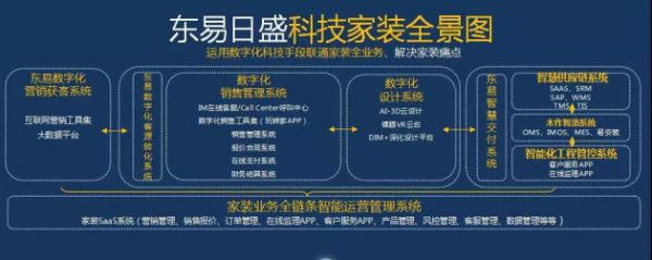 长期以来,东易日盛始终坚持数字化战略,围绕产品和服务质量打造了运用数字化科技手段联通家装全业务的“东易日盛科技家装全景图”,打造家装行业上下游业务链、服务链、数据链互联互通一体化整体解决方案。彻底解决了量房不准、列项不准、报价和算量不精确、出现增项等行业痛点,给客户带来高品质的服务和体验。
