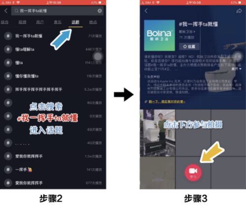 此次挑战赛在抖音平台开展,以航标卫浴创新研发首推上市的挥手感应坐便器,引出“#我一挥手ta就懂”的话题。9月29日至11月4日,在抖音APP搜索“#我一挥手ta就懂”进入话题页,点击拍摄同款,内容可以是挥手舞、情境剧等趣味形式,发布成功即可参与活动。参加挑战赛步骤: