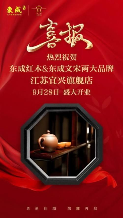 江苏宜兴风光旖旎,文化精深,素有“万古灵迹”、“欲界仙都”之美誉。9月28日,中山市东成家具有限公司(以下简称东成红木)宜兴旗舰店在这座美丽的城市举办了盛大的开业典礼,嘉宾和客户齐聚一堂,共同见证这一喜悦时刻,也对宜兴旗舰店寄予厚望并致以美好的祝愿。
