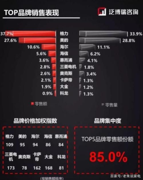 今年的“十一”各大空调品牌成绩有所变化。据泛博瑞咨询线下数据显示:2019“十一期间”(9月30日—10月6日)空调市场零售额为10.8亿元,环比增长103.4%;零售量26.1万台,环比增加96.4%。格力、美的、海尔、海信零售份额达到81.4%,位居品牌销售前列。号称空调界“新霸主”的奥克斯却表现不济,仅位列第七。