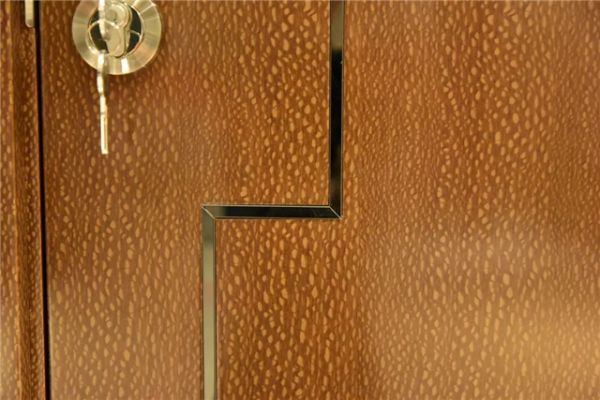染色珍珠木的环保饰面运用了仿生科技的技术,由再生原料制成,不仅保留了天然珍珠木的原有纹理,还增添了质感,具有返璞归真的大自然气息。剔除了天然木皮的死结、虫孔、白边等缺陷,木门表面更光滑,色泽更一致,简约却不失典雅。门面上星星点点如珍珠般的点缀,让这扇门即使没有其他线条装饰,也能做到简约而不简单。