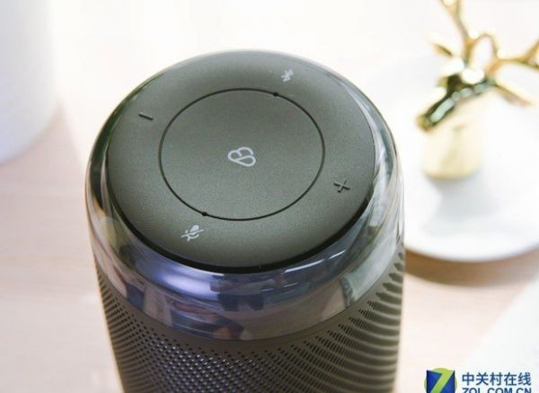 感应灯环可以根据你的不同指令变化不同的颜色,比如你要是关闭麦克风,它就变成红色;你要是打开蓝牙模式,他就是深蓝色。他还会根据你的音量调节来改变亮度,音量越大它的灯环亮度越高,音量更为直观,这点很是加分。