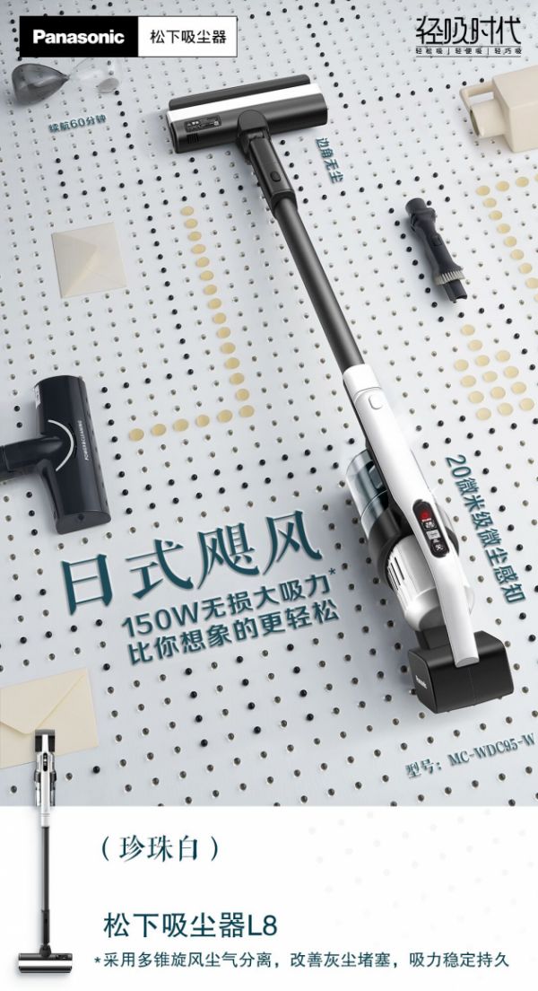 不止为改变生活,更为优化用户体验。松下吸尘器L8全新登场,150W 无损大吸力 比你想象的更轻松。