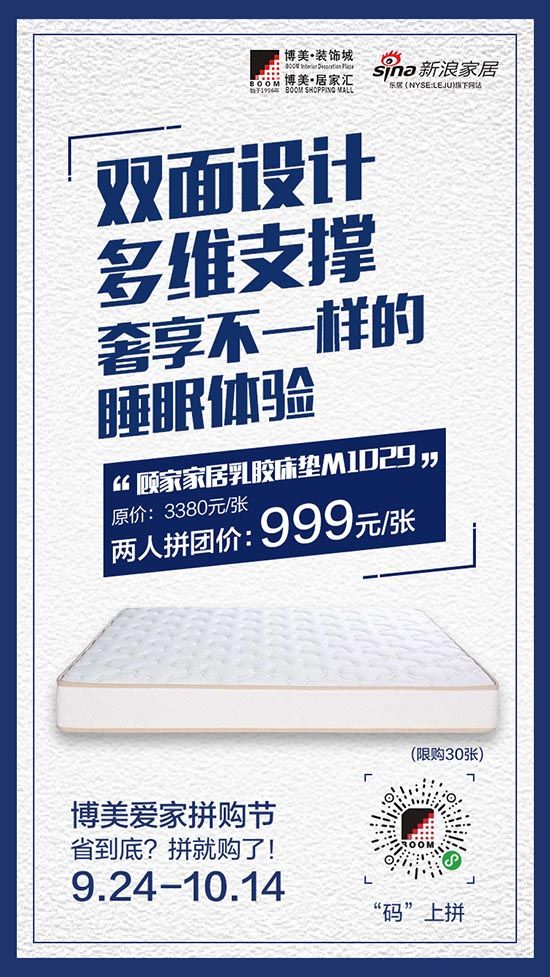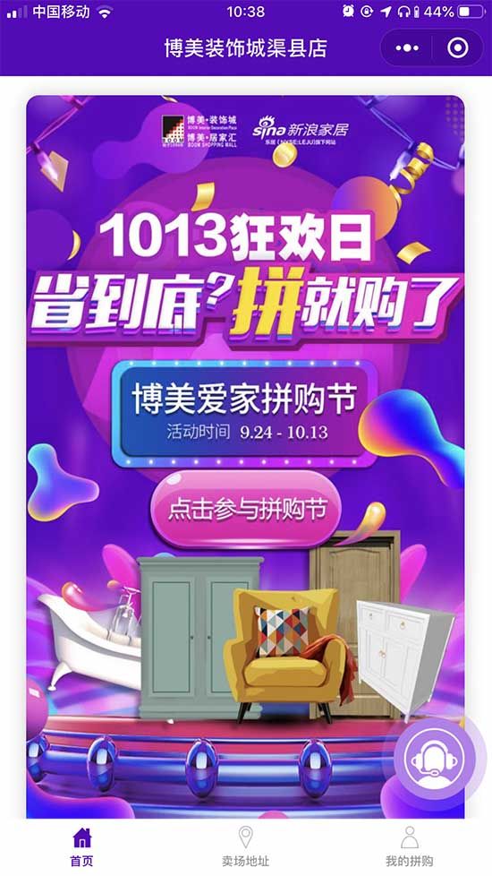 为了方便消费者随时下单,博美开发了拼购小程序,看中哪款产品,只要轻轻一点,就能到小程序对应的卖场直接提货。如果能拉上三五好友,价格还能降得更低。上述负责人告诉新浪家居,拼购是博美的传统回馈活动,但将拼购搬到手机上,还是第一次。“现代人已经离不开手机了,在任何场景下都能便捷实现消费,所以我们这次尝试了把拼购搬到线上,用链接万物的微信做载体。”事实证明,博美这次的尝试非常正确,仅国庆节7天,拼购小程序的访问人数超过20000人次,共有上百套拼购产品拼团成功,仅拼购一项,成交额就超过20万元。