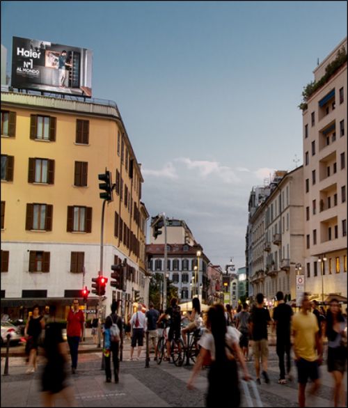 四月二十五日广场位于米兰市中心,连接了夜生活中心之一的步行区科莫大街(Corso Como),周围聚集了众多高端购物中心、餐厅、酒吧、医院和电影院,并且广场内的加里波第门和TeatroSmeraldo剧院在当地久负盛名,成为人们逛街、旅游打卡地点。Luca表示,能在此“黄金地带”竖起海报的都是在当地具有影响力的企业,海尔在意大利有着良好的用户口碑,所以这次看到海尔登上海报并没有让他感到惊讶。