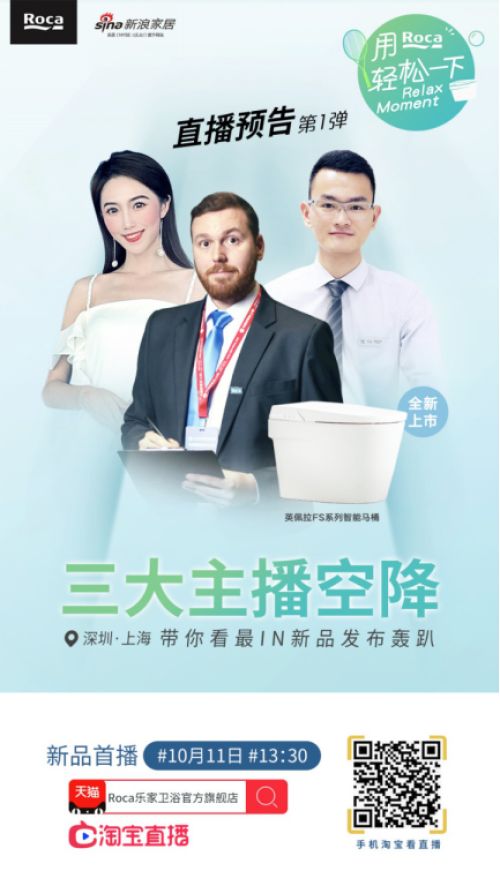 Roca还邀请3大主播淘宝在线直播,新品有哪些亮点?直播有哪些专属福利?怎么购买最划算?10月11日13:30,上淘宝搜“Roca乐家卫浴官方旗舰店 ”,超能福利不要错过!