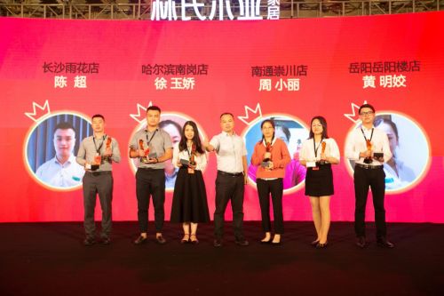 林氏木业新零售事业部副总经理雷之冠为优秀经销商颁奖