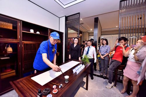10月7日当天,成都著名评书艺术家李伯清先生带来了精彩的表演,现场沉浸在一片欢乐的氛围中,还有幸运观众上台与李伯清先生合影留念,喜获李伯清先生签名,给这个国庆留下了独特的记忆点。表演结束后,李伯清先生还在品牌负责人的带领下走进了柏森家具门店,亲笔画下了扇面,送给门店和幸运观众,非常有意义。