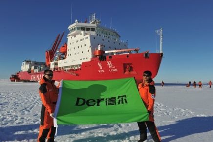 事实告诉我们,耐得住严寒,经得起考验,才有资格屹立在世界之巅。德尔地板深知极端环境下的残酷,也有能力制造出应对极端气候的高品质好地板。2014年,德尔地板携同中国海洋局南北极科考队,搭乘雪龙号科考船到达南极。其德系风尚地板作为中国南北极科考专用产品,在中国各南极考察站全面推广使用。为感谢德尔地板对极地科考的支持,雪龙号队员将带去的德尔旗帜插在基地冰原上。