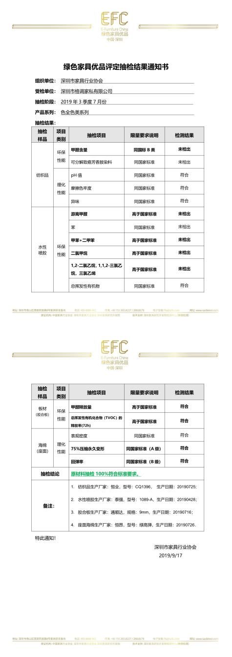 绿色优品来源于原材料100%的合格率与工作人员100%的专注。通用对源头的跟踪与生产过程的严格管控确保产品的品质。多年来,格调家私的产品连续获得中国绿色家具优品称号,通过的是中国标准最为严苛的检测机构的检测,打造的是优于中国标准,比肩国际标准的深圳标准。这是格调家私对国家绿色发展的响应的使命感,也是对消费者高度的责任感。