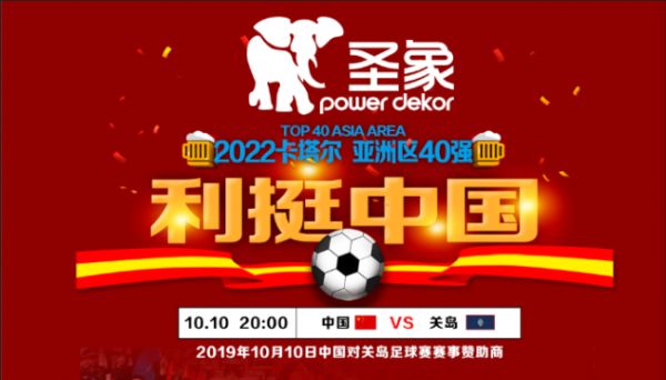 2019年10月10日,2022年卡塔尔世界杯预选赛亚洲区40强赛在广州天河体育场举行,在现场4万名球迷的热切关注下,中国队主场以7比0战胜关岛队,目前国足已经取得了世界杯预选赛两连胜。圣象集团作为本次世界杯预选赛中国对关岛足球赛赛事赞助商。