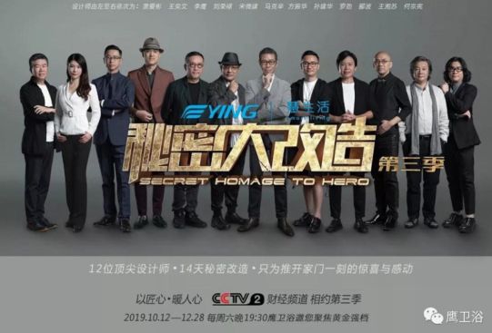 10月12日本周六晚19:30锁定CCTV-2《秘密大改造3》第一期与鹰卫浴一起见证暖心美好生活。