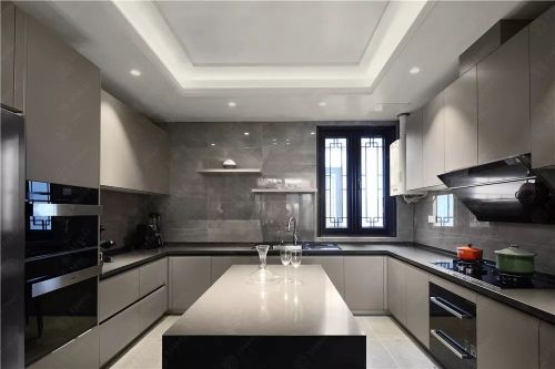 一楼厨房相较于其他空间,厨房则更为现代化,浅灰基调的橱柜与同色系的厨用电器,简单大气,动线简洁明了,操作起来互不碰撞干涉,无比实用。