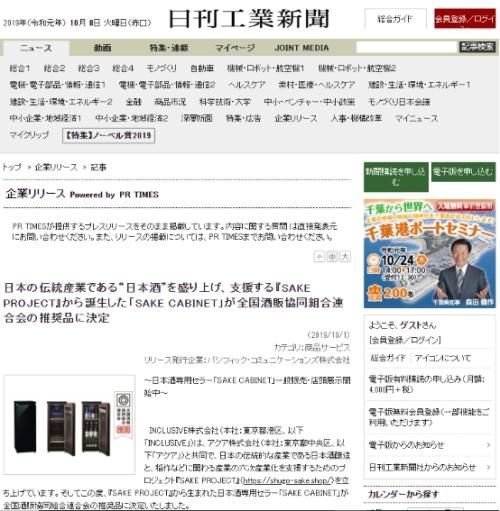 AQUA清酒柜成为日本酒业合作联盟推荐产品