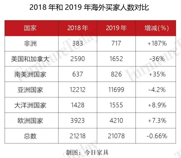 总体上看,国际买家数下降很小,这表明在国际经济不景气的当下,特别是美中贸易战的影响下,我国的家具出口仍保持平稳。