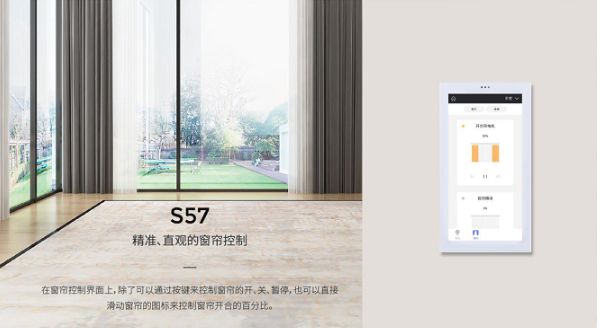 在窗帘控制界面上,除了可以通过按键来控制窗帘的开、关、暂停,也可以直接滑动窗帘的图标来控制窗帘开合的百分比。