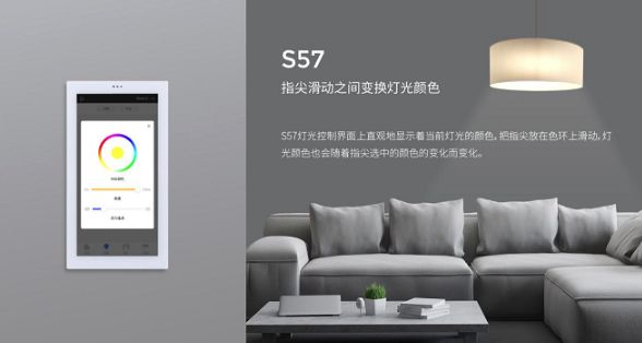 WallApp灯光控制界面上直观地显示着当前灯光的颜色,把指尖放在色环上滑动,灯光颜色也会随着指尖选中的颜色的变化而变化。