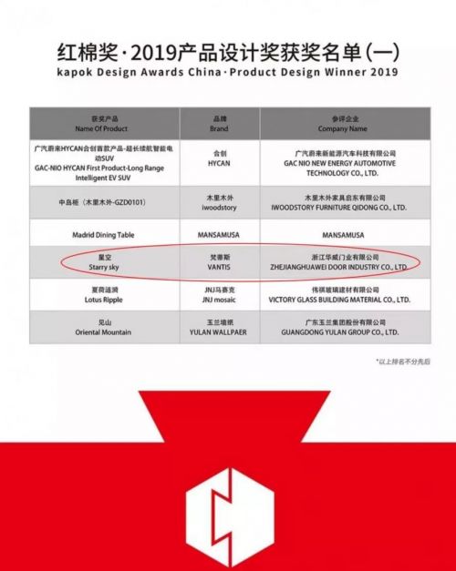 梵蒂斯荣获2019首批中国 · 红棉设计奖