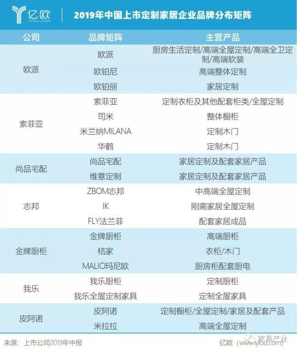 中国上市定制家居企业品牌分布矩阵