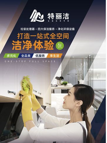 不止垃圾处理器,解锁全空间洁净解决方案 1 套垃圾处理器 1 系列洁净环保设备 4 大家庭商业保洁服务