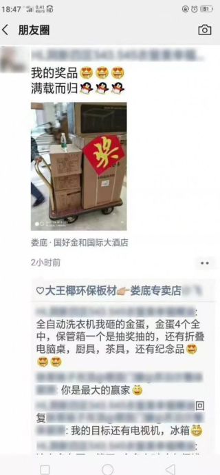 就像这位顾客发的朋友圈说的,她砸了四个金蛋,全部中奖,特别好运的中了全自动洗衣机等豪礼,还在另外的抽奖环节中了保管箱,不仅如此,她的目标还有电视机、冰箱等等,可以说是这场活动的大赢家了。
