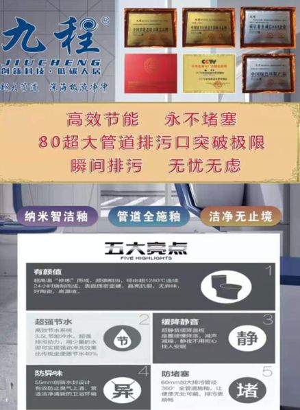 九旗卫浴有限公司自主拥有研发实力和人力资源,公司拥有多款自主知识产权的智能马桶产品,其中专利翻板马桶在业内享有较高的声誉、拥有良口的口碑以及一大批忠实的用户。九旗卫浴的马桶具有节水,防溅,防堵的显著特征;九程系列产品线专营大管道马桶,瞬间冲洗,永不堵塞;九奕系列产品线专营单孔排污马桶,节水节能,冲力强劲。九旗卫浴的智能马桶则集合了公司所有产品的优势。
