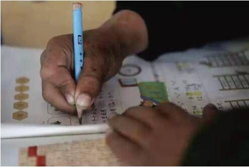 (由于没有及时养成卫生习惯,一些偏远地区的孩子的手和指甲常有污垢摄:三皮)