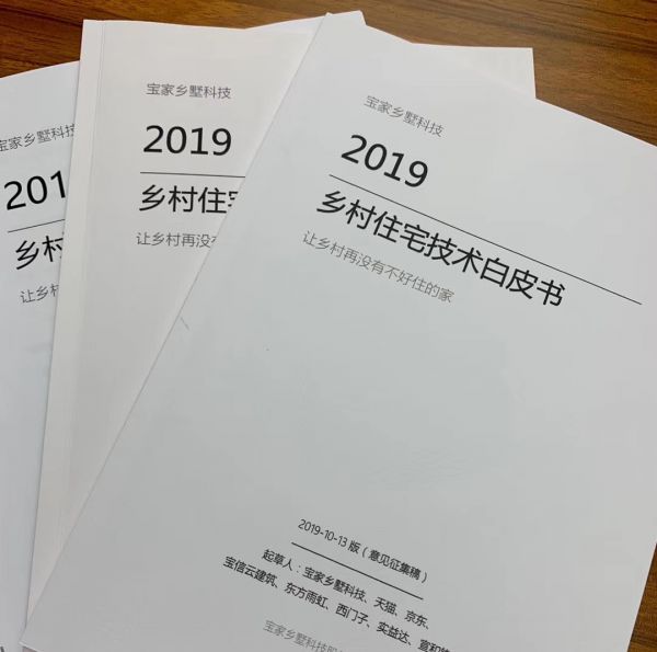 会上发布了国内首部《乡村住宅技术白皮书(征求意见稿)》,此稿由宝家联合天猫、京东、宝信云建筑、西门子、飞利浦、东方雨虹、实益达、宣和钧釉等单位联合编写,并请宝家的业主一起参与提意见和需求,因为他们也是最理解乡村住宅行业痛点的一群人。