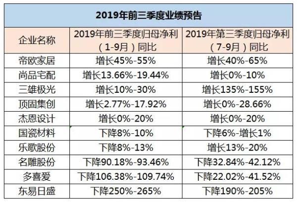 帝欧家居前三个季度增长幅度最大,增长45%-55%,自称是帝王与欧神诺两家公司的融合协同,借房地产精装房之势,零售模式革新和渠道下沉导致经营业绩增长。