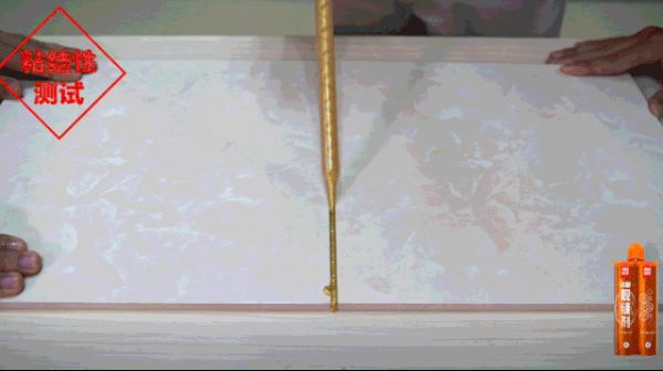 用钻彩靓缝剂把两块瓷砖粘在一起,等48小时干透以后,分别堆上20瓶矿泉水瓶和40斤重的矿泉水桶。瓷砖毫发无损,足以看出钻彩靓缝剂的超强粘结力。