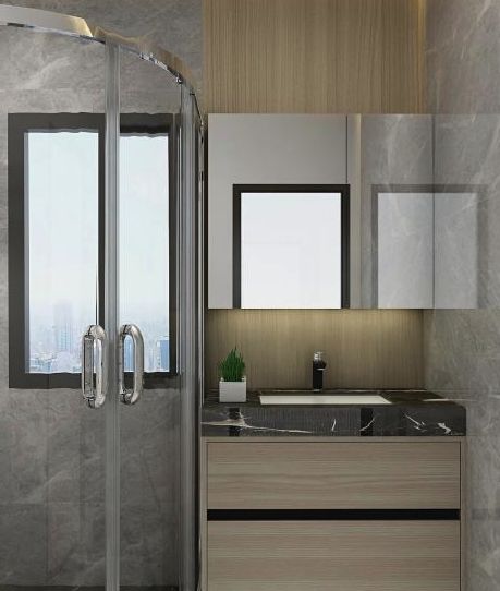 卫生间仅一个浴室柜,是无法满足一家人的收纳需求的,尤其是对于小户型来说。因此,镜柜的存在就是小户型空间不足的救星;精致的镜柜隐藏起生活中的瓶瓶罐罐,时刻保持台面的清洁有序。
