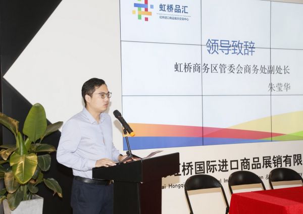 虹桥商务区管委商务处副处长朱莹华在致辞中表示虹桥展销中心将秉承合作共赢的原则,聚焦保税展示交易模式,聚焦首店经济,汇聚各方资源与优势,竭诚为大家提供一流的服务保障和最优的政策支持。