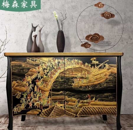新中式柜子,因为特殊工艺要求很少能有机器规模化生产,一般都是纯手工制作。梅森家具柜子有这四大特点:1、会按照要求纯手工彩绘客户喜欢的图案;2、柜子会使用银箔工艺和描金设计;3、为了更加环保和增加柜子的亮度,使用钢琴烤漆;4、考虑到实用功能,一般新中式柜子的搭配都会着有超大的储物空间。