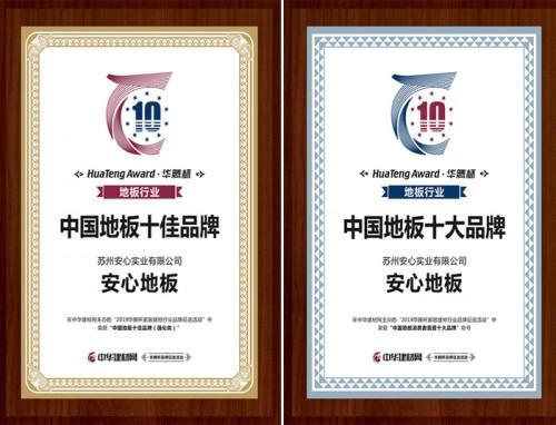 安心地板喜提“2019中国地板十佳、十大品牌”双料大奖