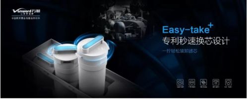 2、Easy-take+专利秒换芯设计。一拧轻松装卸,换滤芯只需3秒,无需等待专业人士上门操作,方便快捷。