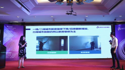 接下来,来到精彩的主题演讲环节,紫荆花涂料集团市场总监纪鹭宁女士及辅材部产品经理尹君先生依次上台,就新消费时代,涂料行业如何转型求发展进行了主题演讲。两位指出,近年来,中国经济进入新常态,新零售的发展给行业同仁们带来了竞争压力,但是总体来看,行业的发展是积极向好的。以消费升级为代表的新零售特征正在成为发展新趋势。大数据、云计算、智能科技等新技术也正取代互联网成为推动新零售前进的全新力量。那么,如何才能在满足用户消费升级的同时,找到一个全新的发展契机,是整个涂料行业应该探索的重要课题。