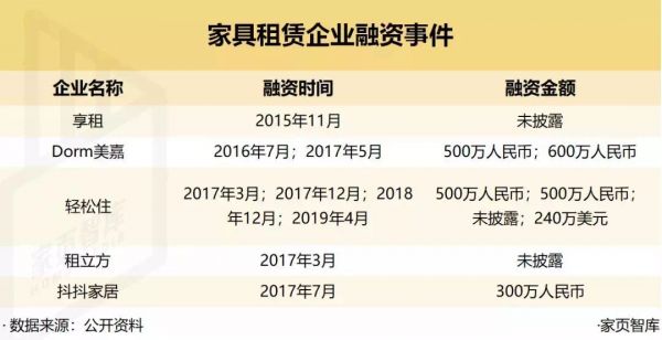 跟随共享经济的步伐,第一批家具租赁企业入局也是在2017年前后,在那一年里拿到了可观的融资。