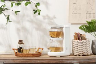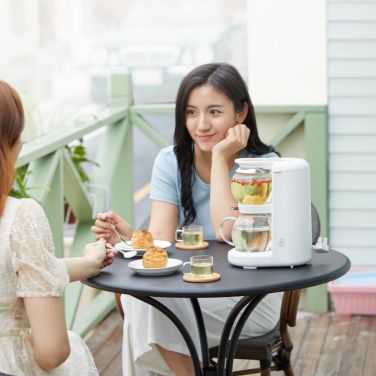 鸣盏沙漏壶有着像沙漏那般梦幻精致的外表:上下两层的器皿均为硕大浑圆、晶莹剔透的玻璃制品,其中上置的是玻璃漏斗,下置的是玻璃分杯。机身为雅致爽洁的雪白色,机顶还有本色木纹装饰。等到开启即热式喷水泡茶功能时,茶客所能欣赏到的画面就更美了:鸣盏沙漏壶巧妙的玻璃漏斗设计,能够让人欣赏到茶叶缓缓舒展的美妙过程!整个鸣盏沙漏壶看起来就像一件艺术品,无怪乎它能斩获今年的德国红点设计大奖了!