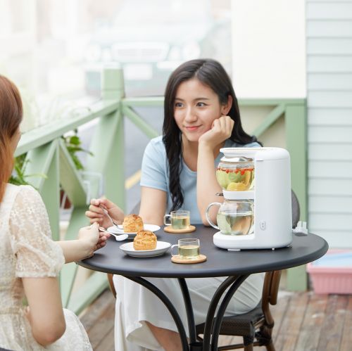 除了泡制专业的花果茶,日常快速冲泡一杯基础茶饮,也是手到擒来。通过热水喷淋的方式,让茶叶迅速舒展释放,释出茶香。再也不用延续先烧水再泡茶的老式套路,生活间隙都能冲泡一杯幸福感满满的好茶。
