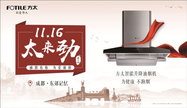 一年一度的方太“太粉惠”早已成为厨电行业的狂欢盛宴,每次都吸引了数千名消费者到场抢购。作为升级版“太粉惠”大型回馈活动,方太2019年度重磅大戏——“11.16 太来劲”厨电盛宴即将空降四川成都东郊记忆。据悉,活动于即日起-11月15日在成都各大卖场方太专柜开始预售,总部操盘、工厂直供…将为有家装和焕新厨电的朋友提供年度最佳购机时机。