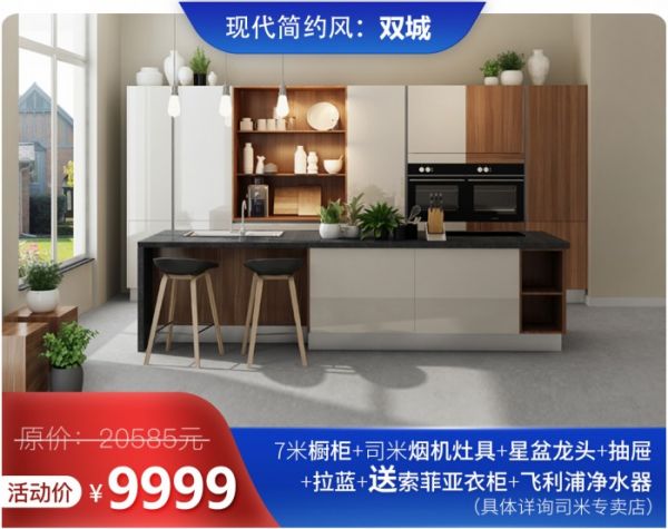 因此,为了回馈广大一直支持司米橱柜的消费者,此次9999元爆款双城橱柜套餐已作为司米橱柜85周年庆高含金量产品加入盛惠阵营。10月18日-11月11日活动期间限时特价9999元一套,套餐配置7米橱柜、司米烟机灶具、星盆龙头、抽屉、拉篮。