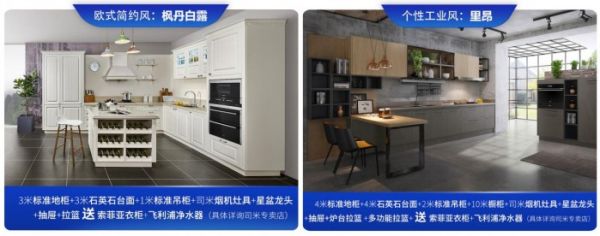 司米橱柜85周年庆盛惠阵营还包括欧式简约风枫丹白露橱柜、个性工业风里昂橱柜等多种风格、多种优惠组合,满足不同消费需求。
