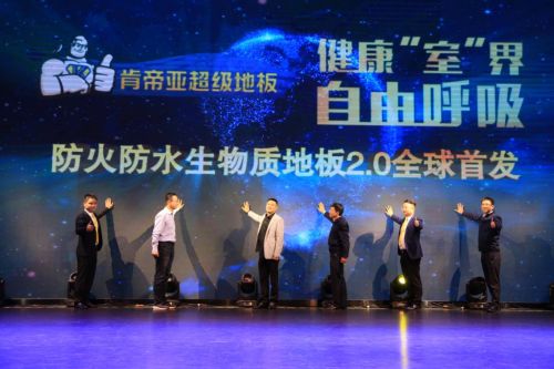 发布会在肯帝亚家居集团董事长郦海星与中国林科院木材工业研究所副所长、研究员吕斌,肯帝亚家居集团总裁助理徐建洪,今日头条产品运营总监赵磊,肯帝亚家居集团市场总监潘伟,肯帝亚家居集团渠道总监万权等6位嘉宾一同进行的肯帝亚防火防水生物质地板2.0全球首发启动仪式达到高潮。标志着建材行业年度黑科技代表——防火防水生物质地板,正式面向全球代理商发售,也标志着家居健康新时代的到来!